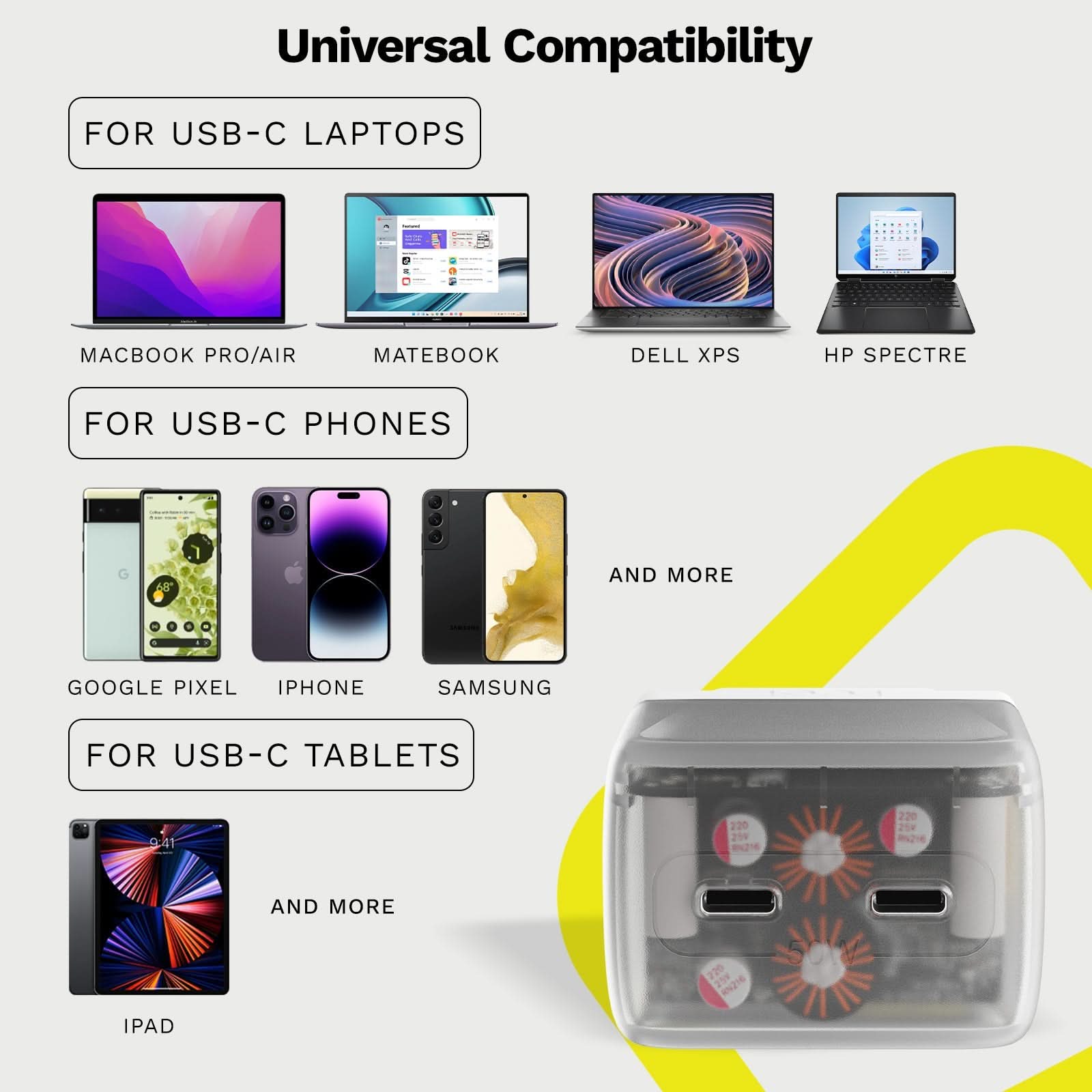 Fuel 50W Dual USB C Wall Charger (Frosted White) - 2 Pack