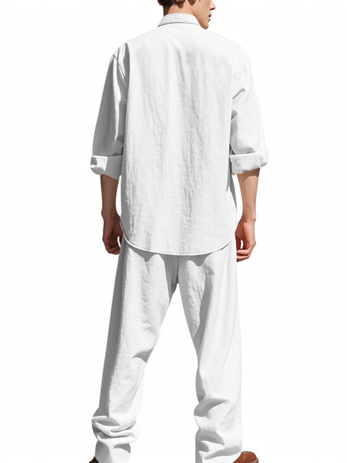 Men's Full Size Button Up Shirt and Pants Set Plus Size