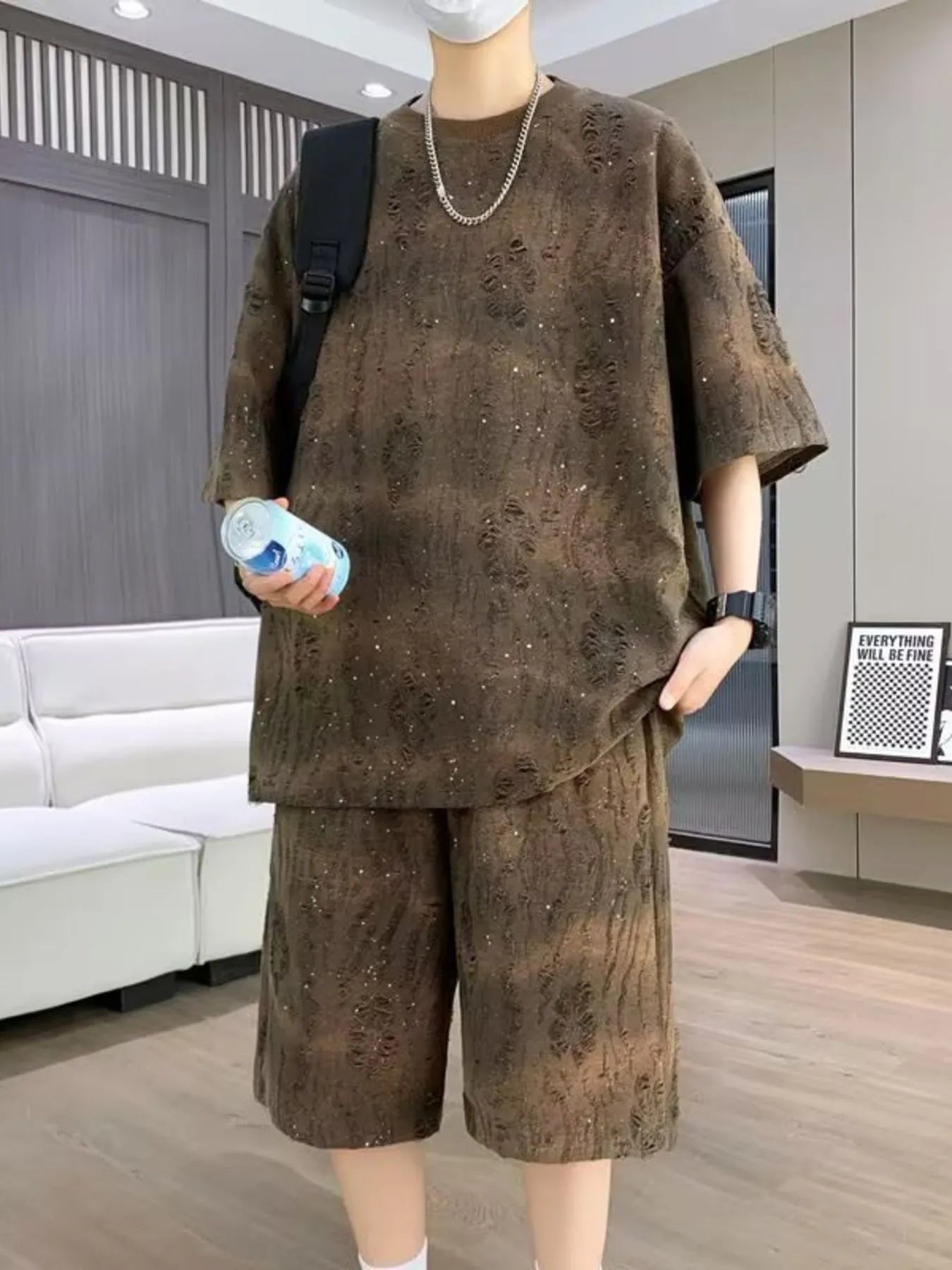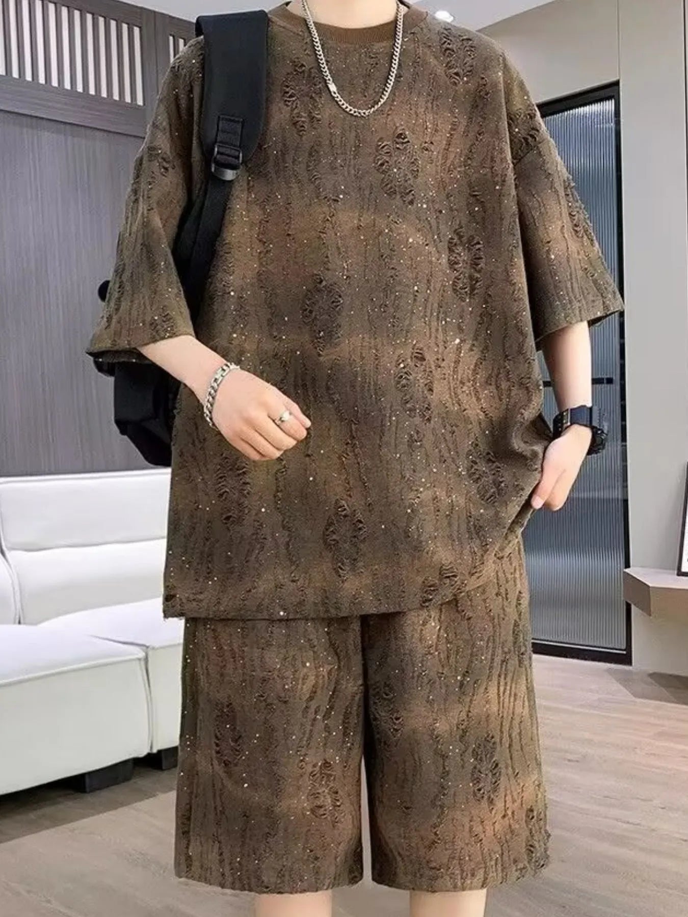 Men's Full Size Round Neck Half Sleeve Top and Shorts Set Plus Size