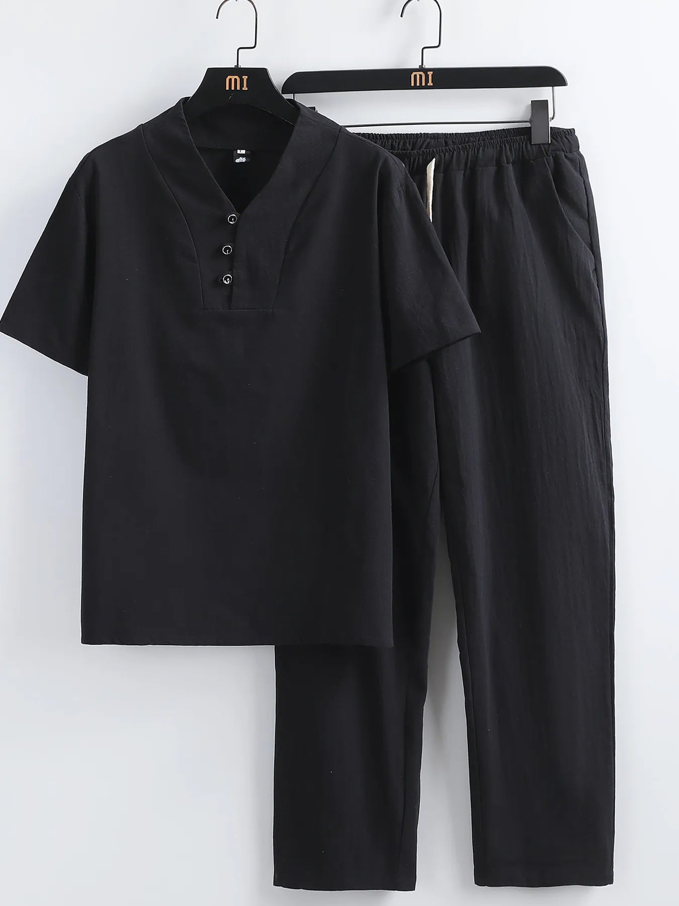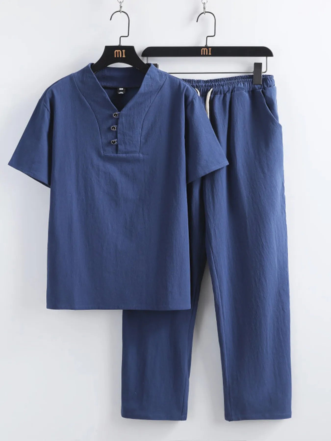 Men's Plus Size V-Neck Short Sleeve Top and Pants Set