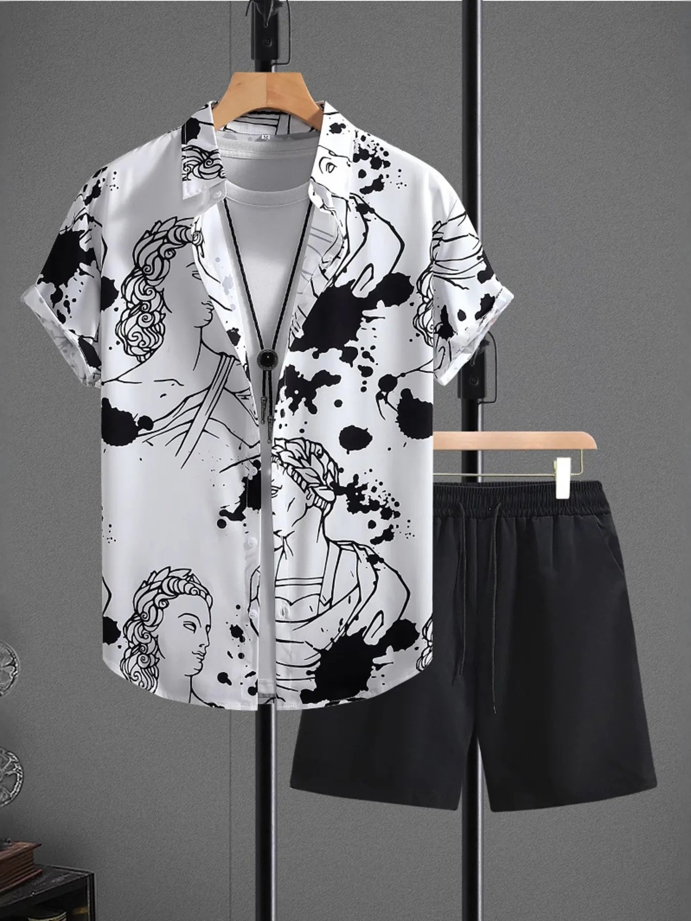 Men's Printed Button Up Shirt and Shorts Set